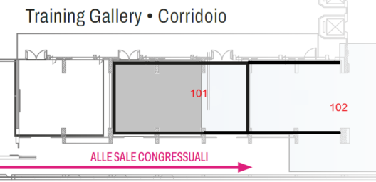 DIMENSIONI: Area espositiva con sala corsi. Altezza massima di allestimento 2,50 m.